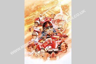 To commemorate 50 years of Ferrari Racing features Enzo Ferrari and Ferrari World Champions: Albert Ascari (1952 & 1953) Juan Manuel Fangio (1956) Mike Hawthorn (1958) Phil Hill (1961) John Surtees (1964) Niki Lauda (1975 & 1977) Jody Scheckter (1979)